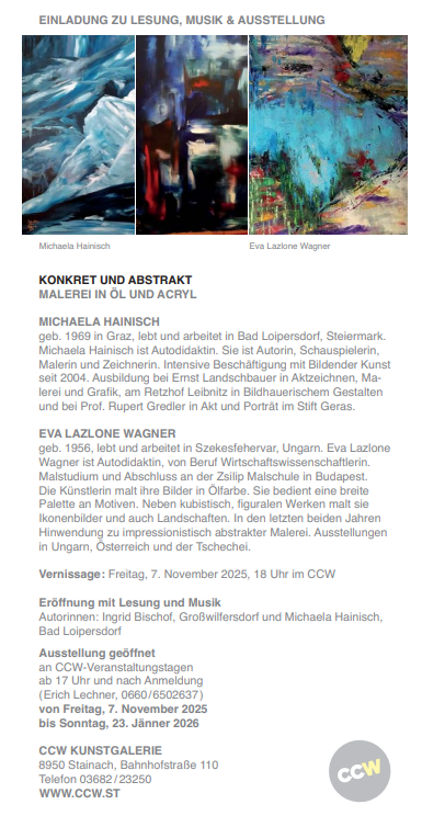 Ausstellung geöffnet an CCW-Veranstaltungstagen ab 17 Uhr und nach Anmeldung